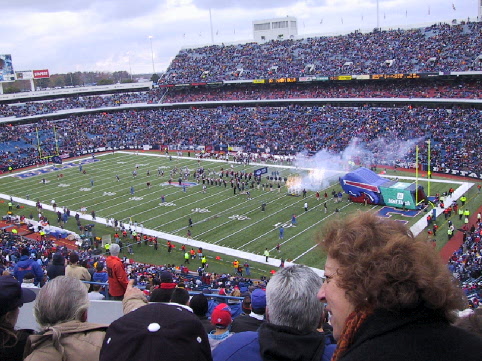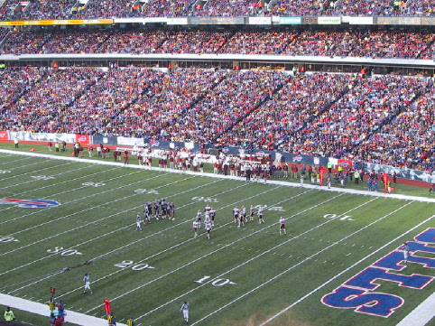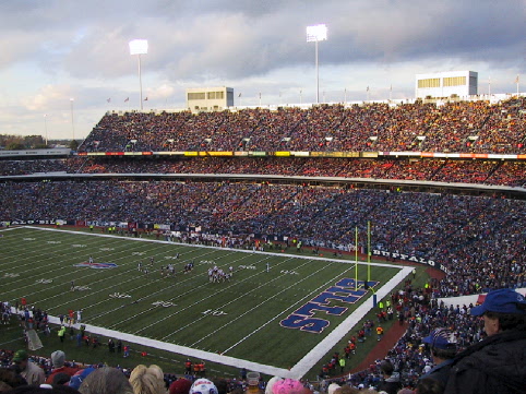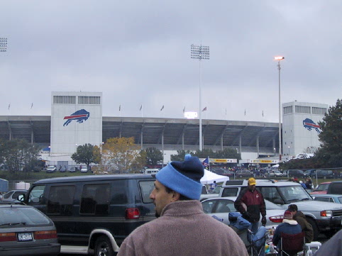 Things got a little ugly on the road to Orchard Park when 219N made an unexpected jog and we had to cut into a line of traffic. I got the feeling my Redskins jersey wasn’t going over too well so I peeled it off in favor of a red sweater. That’s a good Bills color.