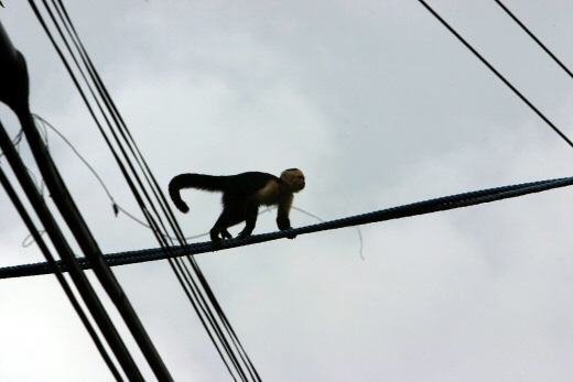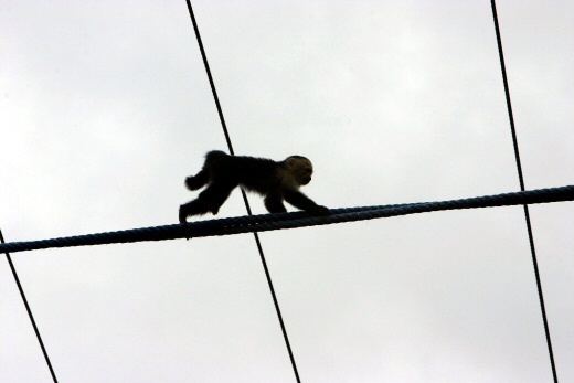 Okay, so some of those wires were actually ropes put there to help the endangered squirrel monkeys make it to the water without being run over or electrocuted. The bridges are maintained by Kids Saving the Rainforest, a non-profit founded by 9-year-old girls to educate humans and assist monkeys.