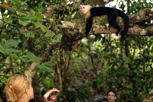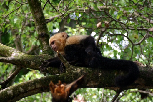 While Alberto was very helpful in identifying birds and plants, we were able to spot the capuchin monkeys on our own. We happened upon about a dozen of the little guys crossing over the footpath to reach the beach and steal lunches from the local sunbathers.